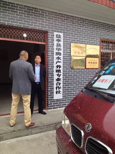 圖為考察團(tuán)在麻秧鄉(xiāng)華騰水產(chǎn)養(yǎng)殖專業(yè)合作社咨詢水產(chǎn)品種引進(jìn)事宜。