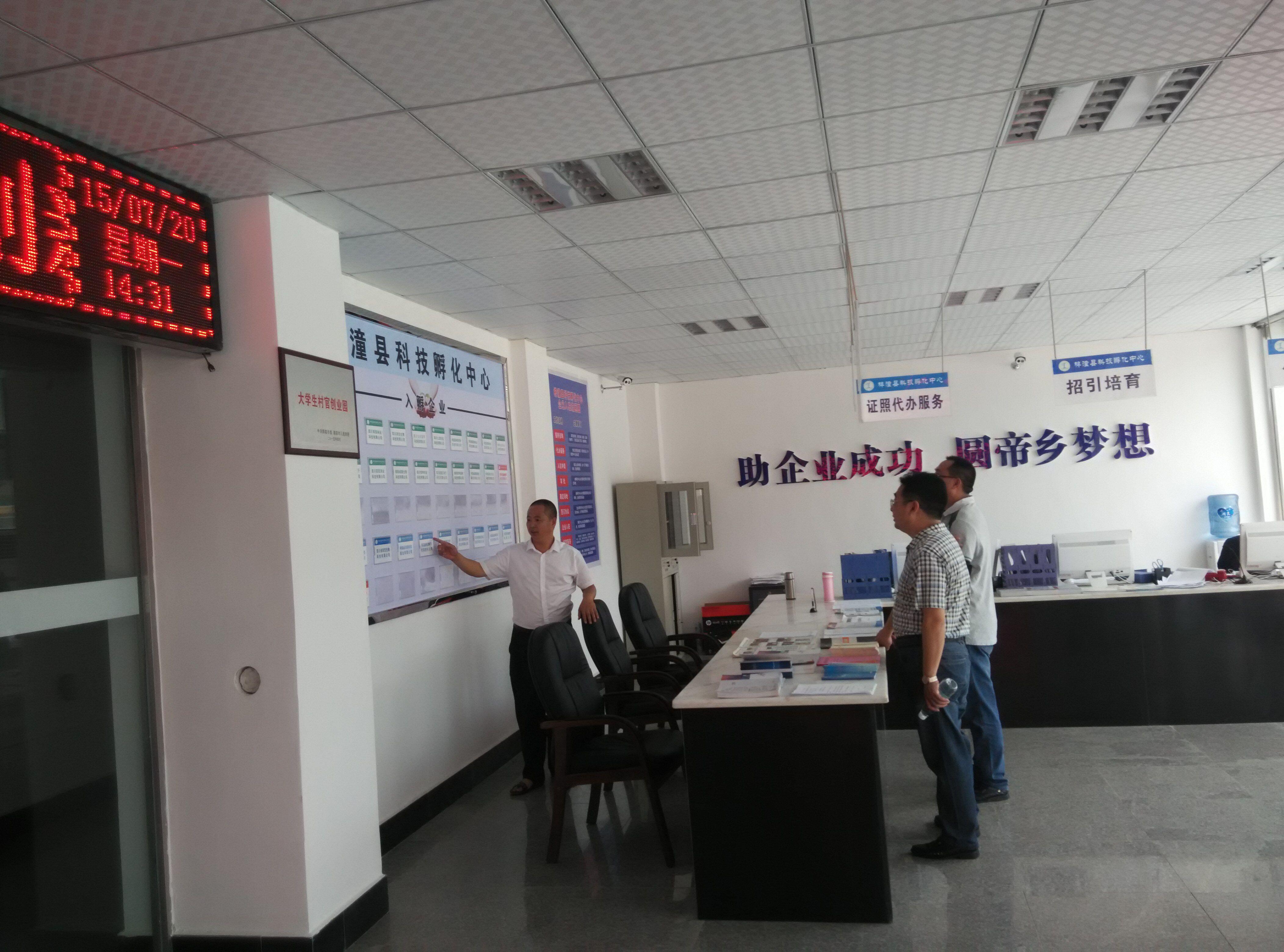 2015年7月20日14點(diǎn),梓潼人社局魏永國局長、趙正華主任蒞臨梓潼科技孵化中心考察調(diào)研,孵化中心楊旭靜經(jīng)理全程接待陪同,詳細(xì)講解科技孵化中心運(yùn)作情況。