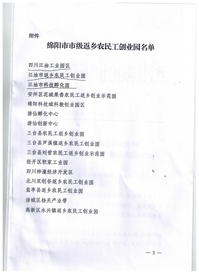 近日,江油市科技孵化園被認(rèn)定為綿陽市市級返鄉(xiāng)農(nóng)民工創(chuàng)業(yè)園。