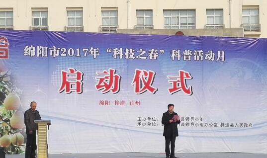 2017年3月7日上午,由綿陽(yáng)市科普領(lǐng)導(dǎo)小組主辦,綿陽(yáng)市科普領(lǐng)導(dǎo)小組辦公室、梓潼縣人民政府聯(lián)合承辦的“綿陽(yáng)市第二十二屆科技之春科普活動(dòng)月”暨“梓潼縣科技文化衛(wèi)生三下鄉(xiāng)”活動(dòng)啟動(dòng)儀式在梓潼縣許州鎮(zhèn)場(chǎng)鎮(zhèn)舉行。副市長(zhǎng)孫福全、梓潼縣人民政府縣長(zhǎng)賀旺致辭,市政府副秘書(shū)長(zhǎng)龍佳林主持啟動(dòng)儀式。