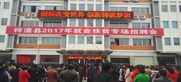 為促進我縣貧困家庭人員和農(nóng)村富余勞動力就近就地轉(zhuǎn)移就業(yè),促進縣域經(jīng)濟發(fā)展,梓潼縣人社局決定于3月29日在梓潼縣科技孵化中心召開“就業(yè)扶貧縣內(nèi)企業(yè)專場招聘會”梓潼縣長賀旺、副縣長鄧志軍、人社局局長王杉、副局長馬林全、經(jīng)開區(qū)副主任張銳等領(lǐng)導(dǎo)出席了此次招聘會。各鄉(xiāng)鎮(zhèn)組織派專人帶領(lǐng)本地貧困家庭勞動者和農(nóng)村富余勞動力積極參次招加本聘會。