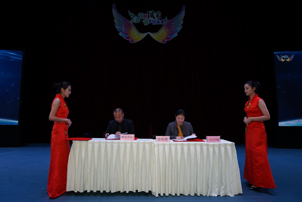 會(huì)上,四川省文化藝術(shù)學(xué)院與梓潼縣科技孵化中心簽訂校企戰(zhàn)略合作協(xié)議。