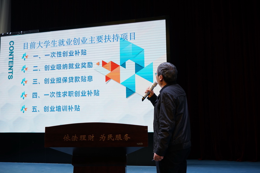 縣人社局、縣科工商務(wù)局、縣總工會(huì)、團(tuán)縣委、縣經(jīng)開區(qū)等相關(guān)部門做創(chuàng)新創(chuàng)業(yè)扶持政策宣講。