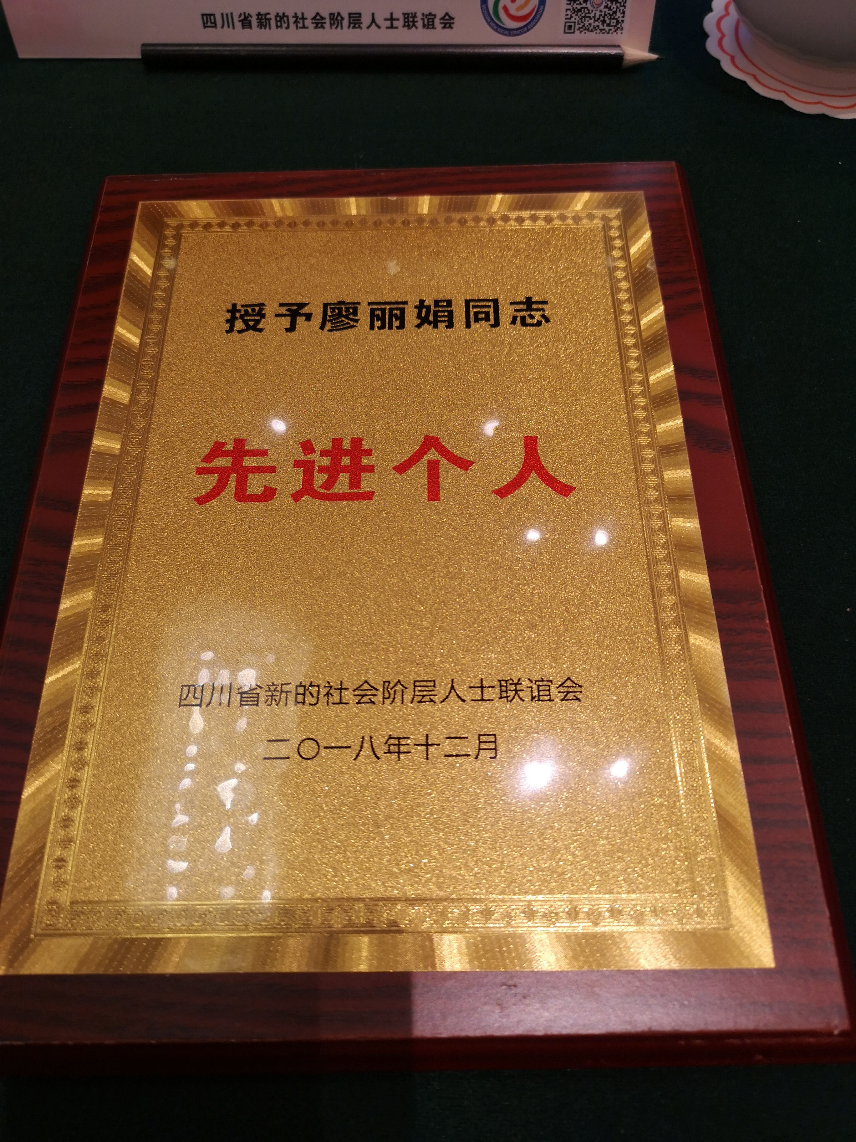 科源新的社會(huì)階層人士聯(lián)誼會(huì)成立一年多以來(lái),在中共四川省委統(tǒng)戰(zhàn)部的領(lǐng)導(dǎo)下,認(rèn)真學(xué)習(xí)貫徹習(xí)近平新時(shí)代中國(guó)特色社會(huì)主義思想和黨的十九大精神、省委十一屆三次會(huì)議精神,深入貫徹落實(shí)全國(guó)、全省新的社會(huì)階層人士統(tǒng)戰(zhàn)工作會(huì)議部署,凝心聚力,開(kāi)拓創(chuàng)新,為推動(dòng)治蜀興川再上新臺(tái)階貢獻(xiàn)智慧和力量??圃葱侣?lián)會(huì)會(huì)長(zhǎng)廖麗娟因積極參與新聯(lián)會(huì)建設(shè)、踴躍組織和參加新聯(lián)會(huì)活動(dòng)、積極投身經(jīng)濟(jì)社會(huì)發(fā)展,被授予先進(jìn)個(gè)人稱(chēng)號(hào)。