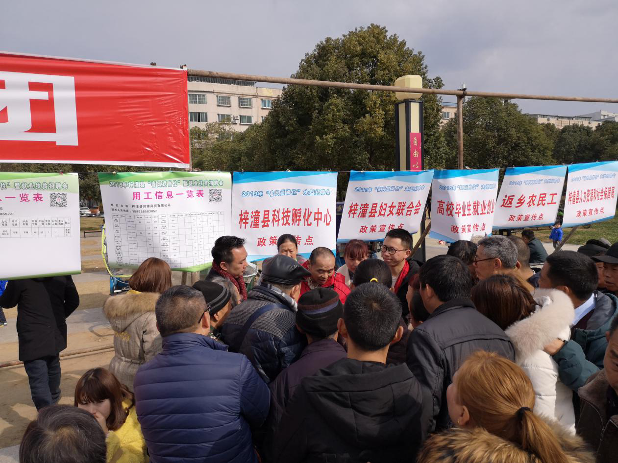 新年伊始,萬(wàn)象更新。2月12日,梓潼縣2019年春風(fēng)送崗位暨就業(yè)扶貧招聘會(huì)在縣人民廣場(chǎng)舉行,此次招聘會(huì)由中共梓潼縣委、梓潼縣人民政府主辦,縣人社局、縣扶貧開(kāi)發(fā)局、縣總工會(huì)、縣婦聯(lián)、縣殘聯(lián)、縣就業(yè)局、縣科工局等單位聯(lián)合承辦,市總工會(huì)黨組成員、副主席田秀輝,縣人民政府副縣長(zhǎng)蒲遠(yuǎn)富出席啟動(dòng)儀式。