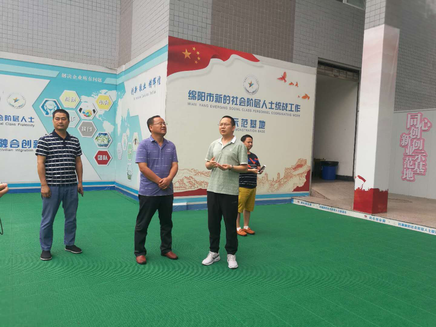 2019年6月19日,攀枝花市西區(qū)區(qū)委統(tǒng)戰(zhàn)部副部長杜仁輝一行在科創(chuàng)區(qū)黨群部主任張敏陪同下,考察了科源新的社會階層人士實(shí)踐創(chuàng)新基地。 同心孵化器總經(jīng)理邢良勇對科源新聯(lián)會實(shí)踐創(chuàng)新基地情況做了詳細(xì)介紹。