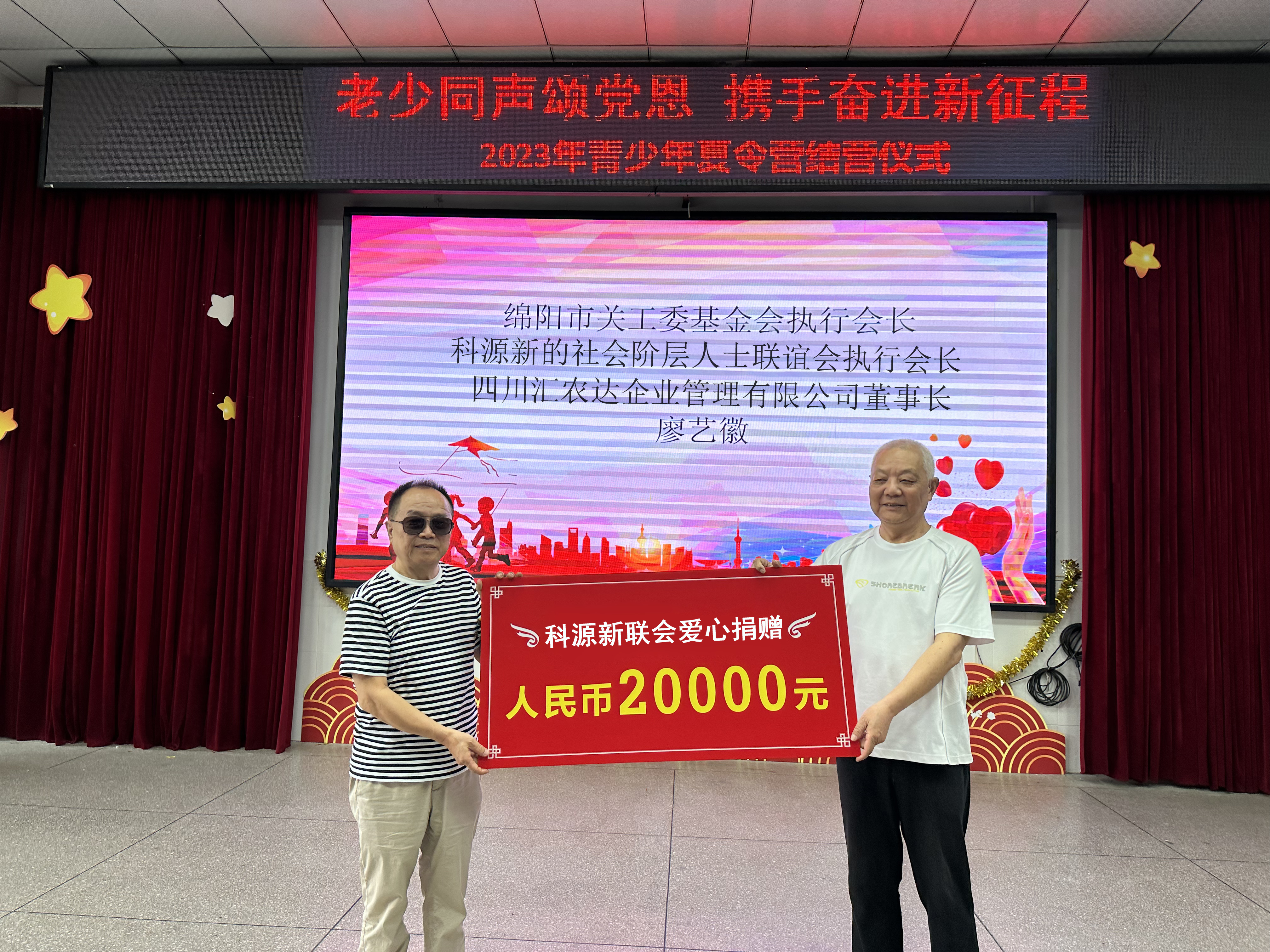 7月7日上午,由江油市舉辦的《老少同聲頌黨恩,攜手奮進新征程“2023年青少年夏令營結(jié)營暨愛心捐贈活動”》在江油市外國語學校舉行??圃醇瘓F董事長、科源新聯(lián)會名譽會長廖藝徽代表科源參與了本次捐贈并做重要發(fā)言。